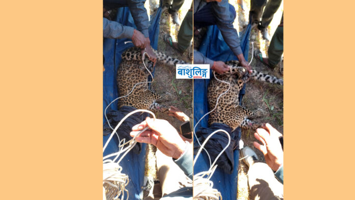 आइतबार राति पासोमा फसेको चितुवाको मंगलबार डार्टिङ गरेर उद्धार, उपचारपछि जंगलमै छोड्ने तयारी।